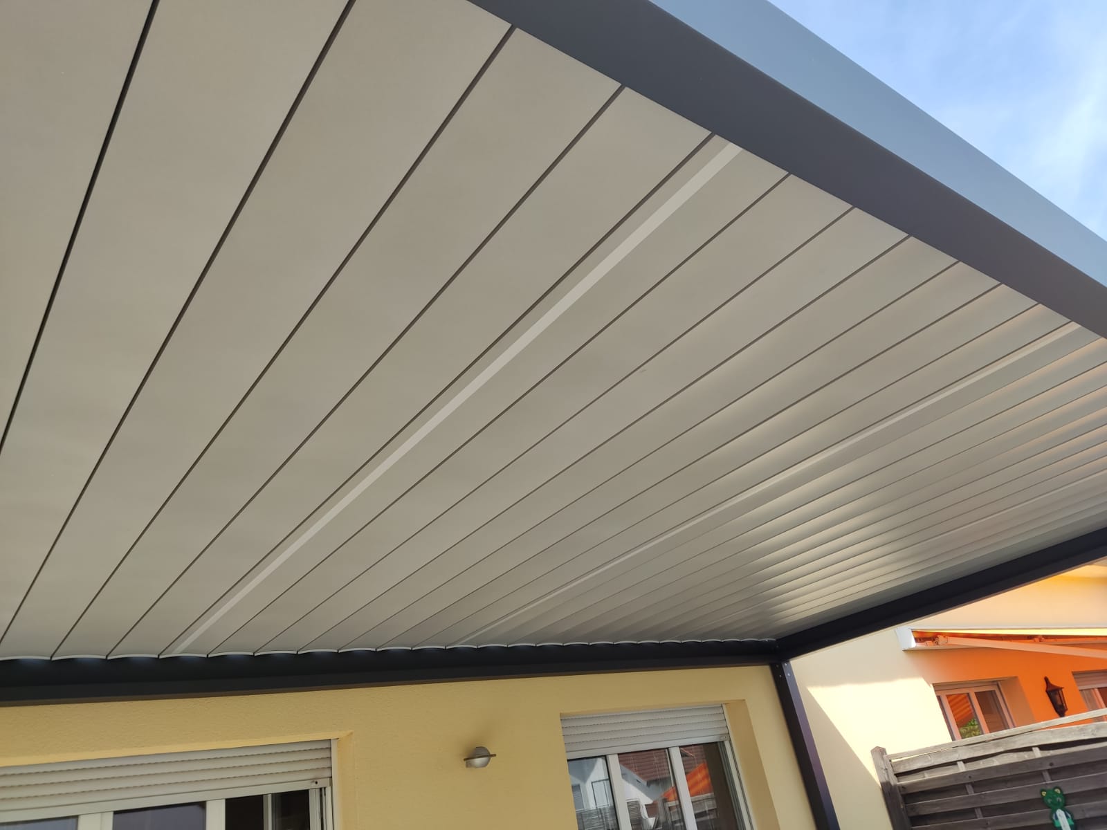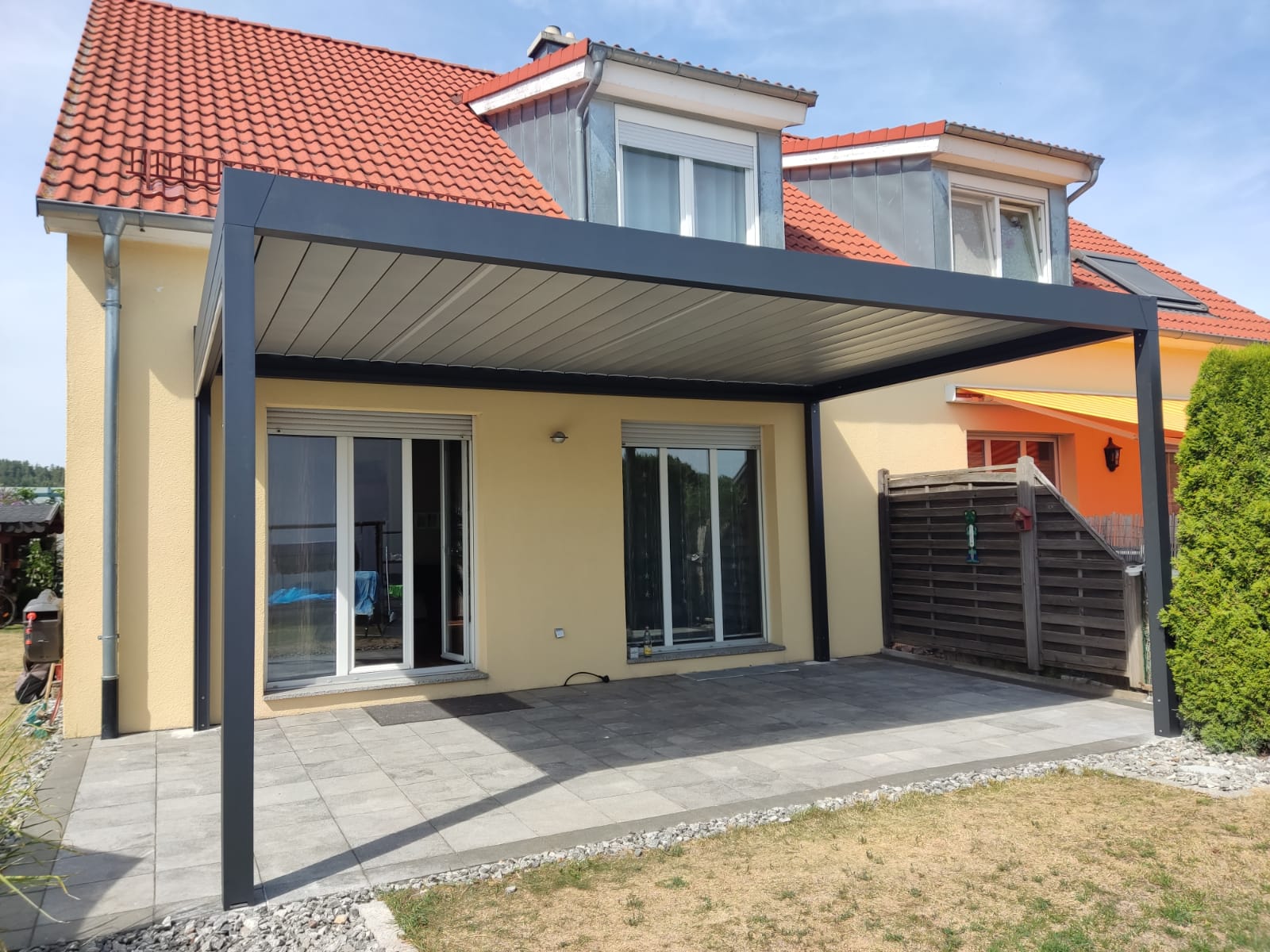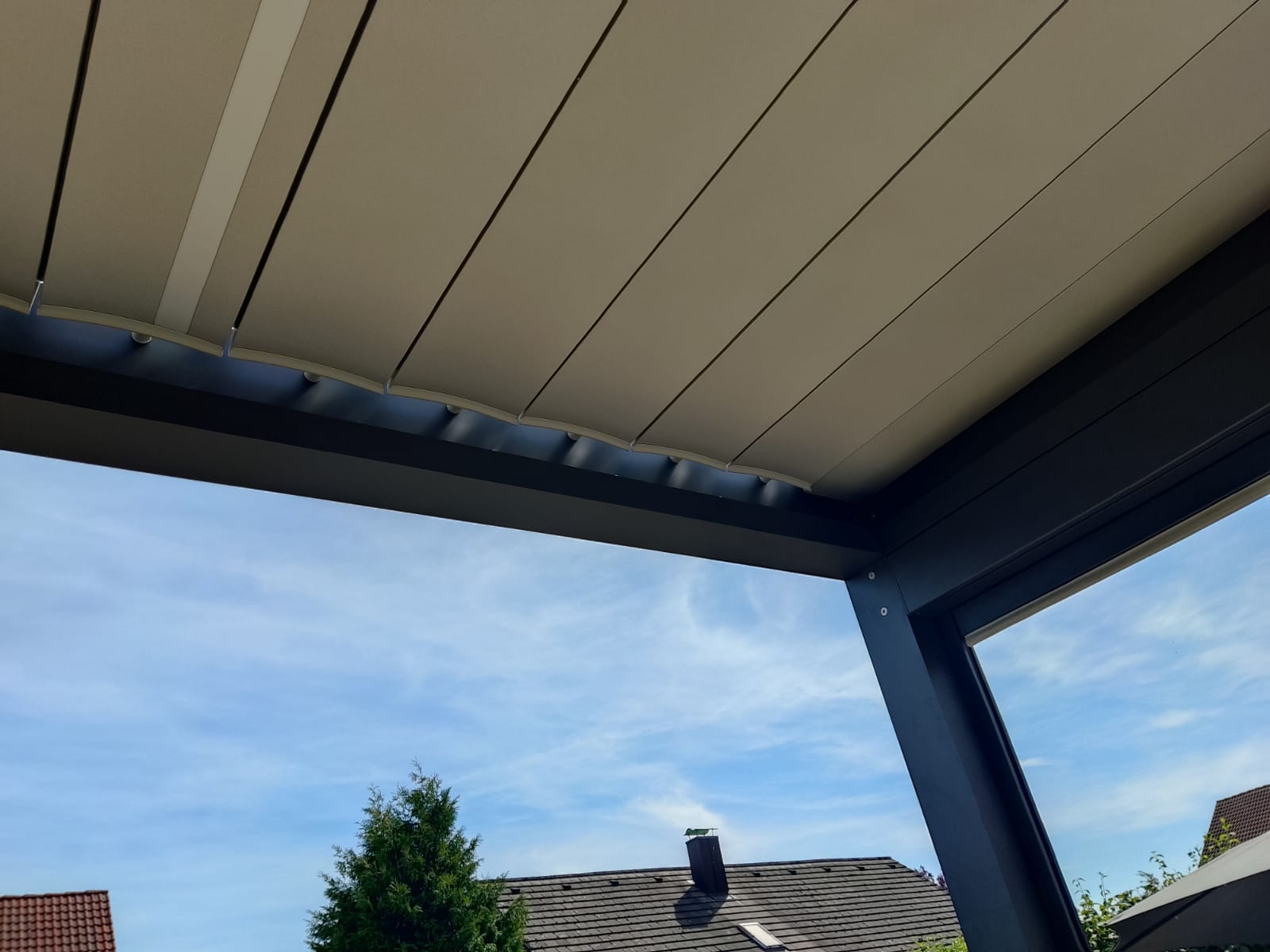 Ein schattiges Plätzchen gefällig? Wir montieren die Überdachung für Ihr Wohnzimmer im Freien.