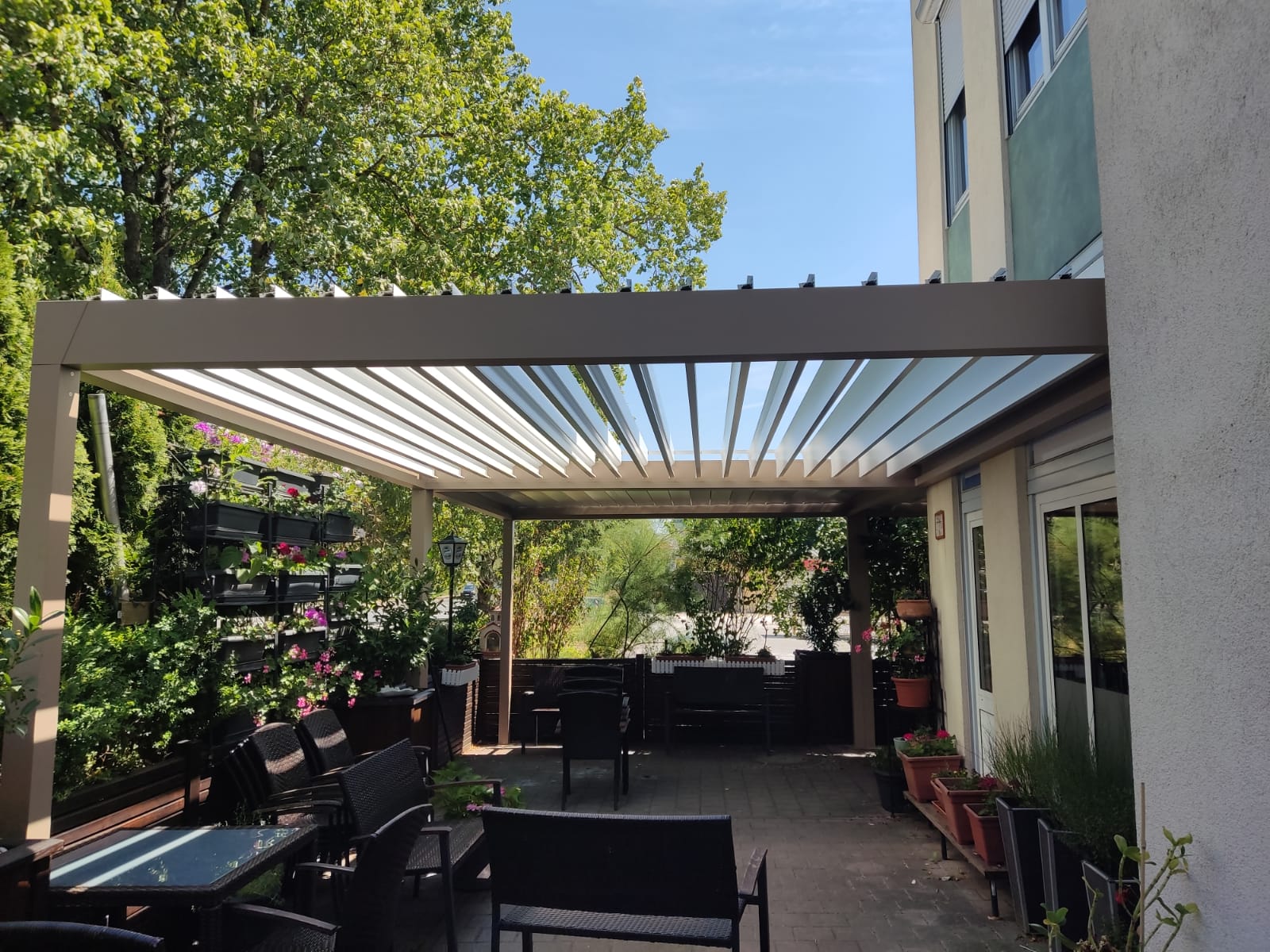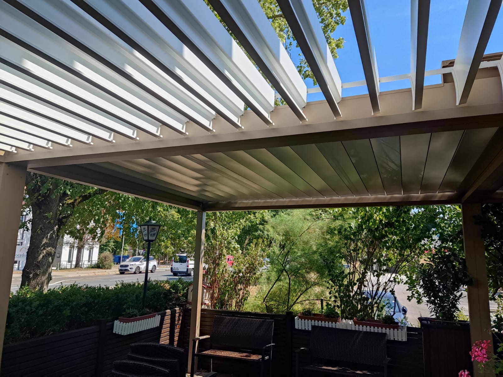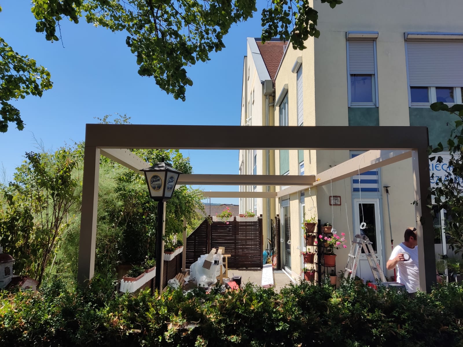 Ein schattiges Plätzchen gefällig? Wir montieren die Überdachung für Ihr Wohnzimmer im Freien.
